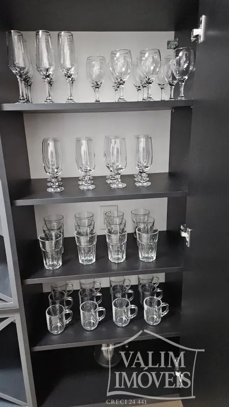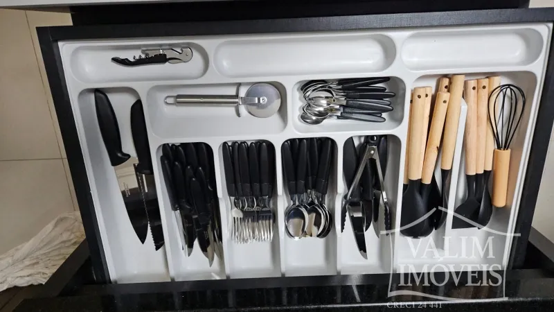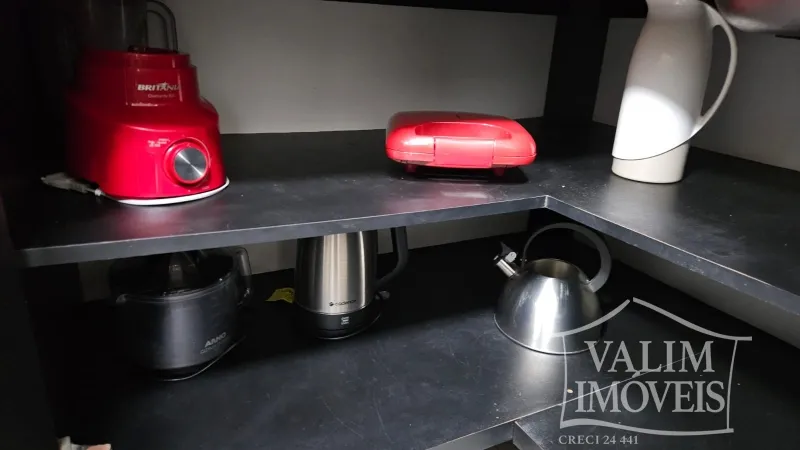 Cozinha completa com fogão, geladeira duplex, micro ondas, forno elétrico, liquidificador, torradeira, e demais utensílios.