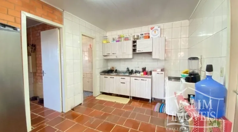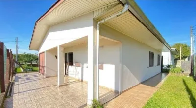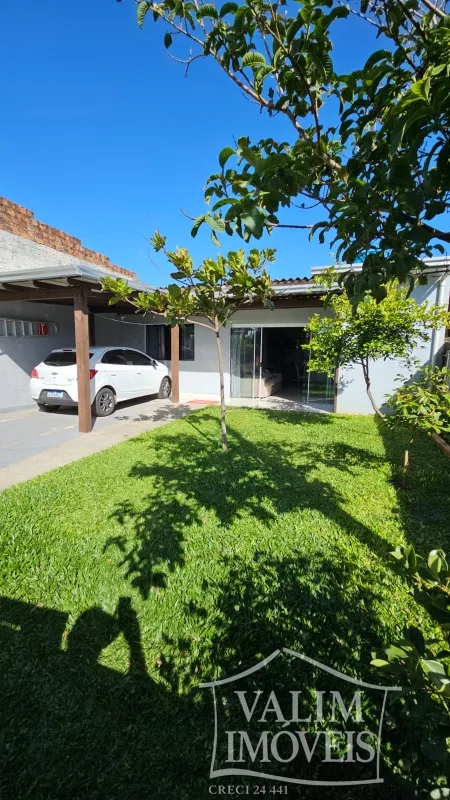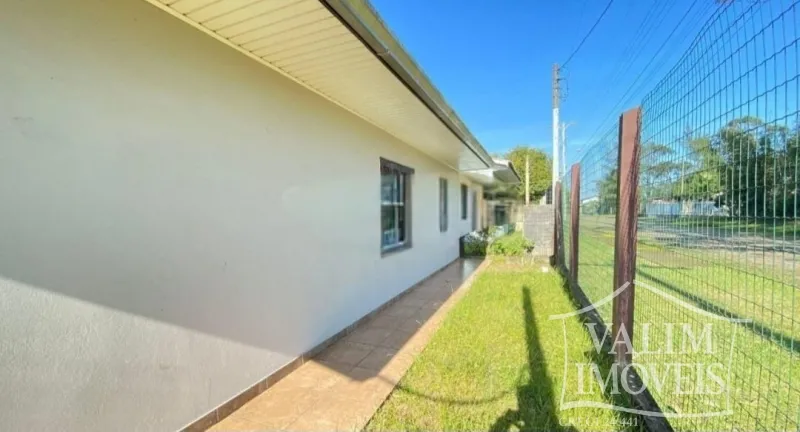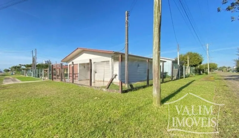 Casa de esquina com 03 dormitórios, sala de estar, sala de jantar cozinha, banheiro, churrasqueira, área de serviço e garagem.